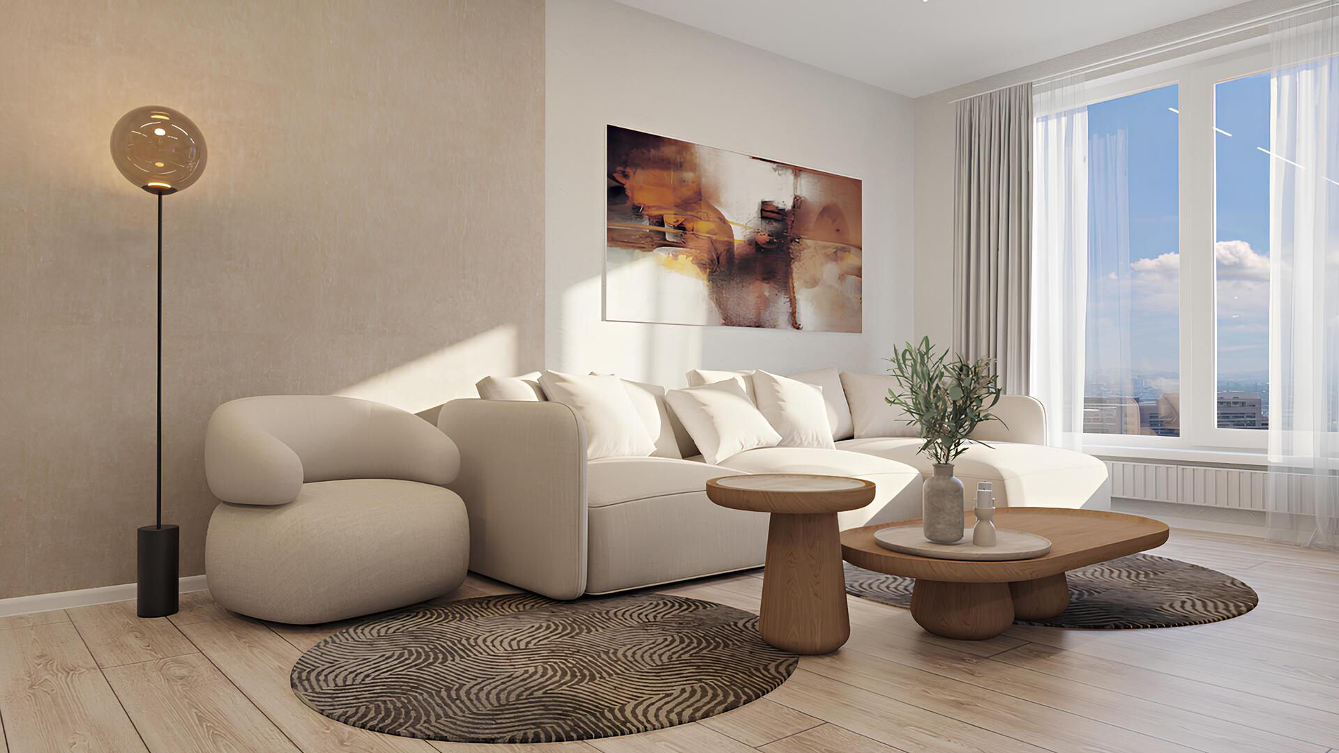 Высокие ножки шкафа упростят уборку, а минималистичная фурнитура не будет отвлекать на себя внимание.